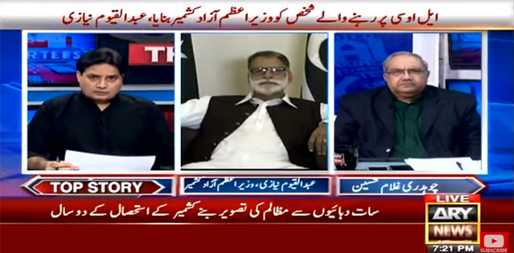 اے آر وائی نیوز کے پروگرام دی رپورٹرز میں گفتگو کرتے ہوئے وزیراعظم آزادکشمیر نے کہا کہ پاکستان میں جرات منداوربہادرشخص کی حکومت ہے وزیراعظم عمران خان کشمیرکےسفیرہیں انہوں نے عملی طور پر وکیل اور سفیر ہونےکاثبوت دیا ہے۔