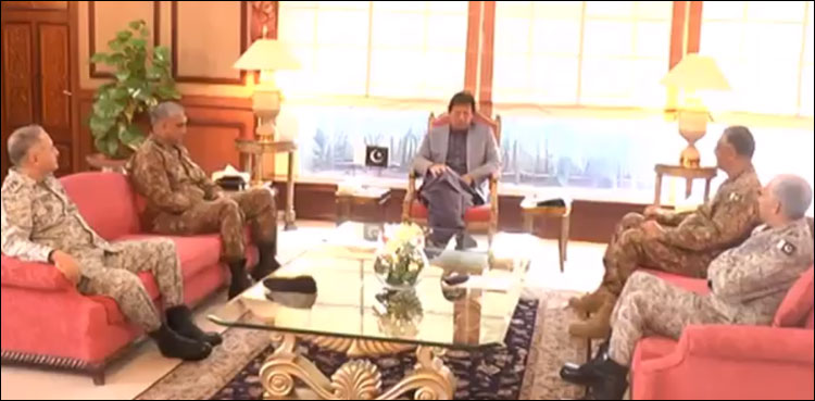 ان خیالات کا اظہار انہوں نے ملاقات کیلیے آنے والے مسلح افواج کے سربراہان سے گفتگو کرتے ہوئے کیا، وزیراعظم عمران خان سے تینوں مسلح افواج کے سربراہان نے ملاقات کی، ملاقات وزیراعظم آفس میں ہوئی۔