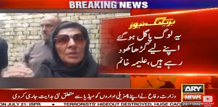 علیمہ خانم نے کہا کہ یہ لوگ پاگل ہوگئے ہیں، اپنے لیے گڑھا کھود رہے ہیں، احمد خان بھچر کا فون آیا تھا بتایا کہ دس سال قید کی سزا ہوئی ہے، ایک اے ایس آئی نے گواہی دی جو جائے وقوعہ پر تھا ہی نہیں، جن کو سزائیں دینی چاہیے وہ ہمارے اوپر مسلط ہیں۔