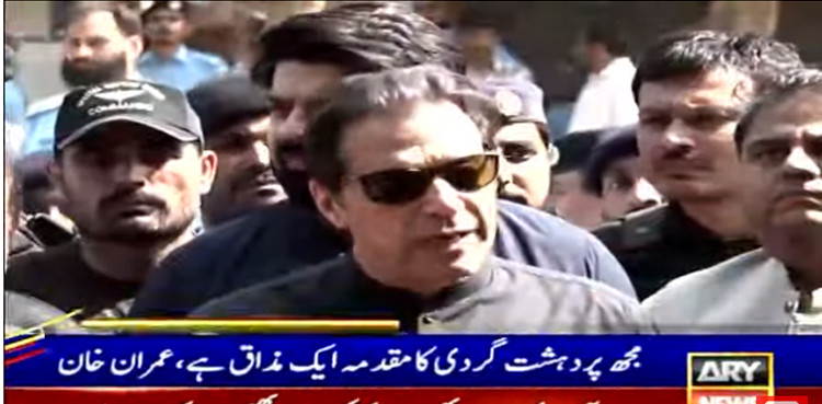 سابق وزیراعظم کا کہنا تھا کہ مجھ پر دہشت گردی کا مقدمہ درج کیا گیا، یہ مقدمہ پوری دنیا کے سامنے ایک مذاق بن گیا ہے دنیا کو پتاچل گیا کہ عمران خان کو دہشت گردی کے مقدمےمیں ڈال دیا۔
