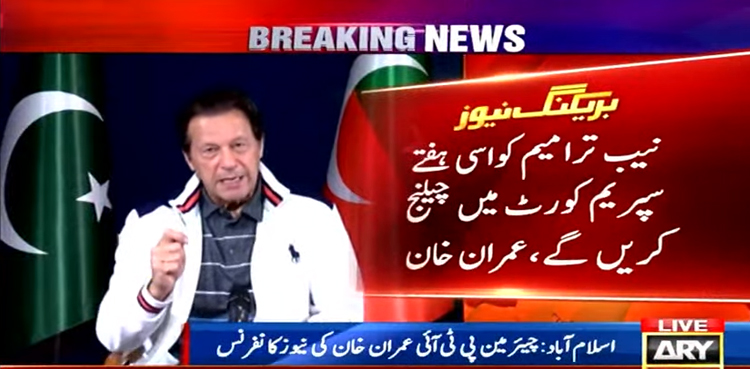 اسلام آباد میں نیوز کانفرنس کرتے ہوئے چیئرمین تحریک انصاف عمران خان نے کہا کہ نیب ترامیم کو سپریم کورٹ میں چیلنج کرنے کا فیصلہ کیا ہے، نیب ترامیم کو اسی ہفتے سپریم کورٹ میں چیلنج کیا جائے گا، 26 سال پہلے کہا تھا جس قوم میں کرپشن ہو وہ ترقی نہیں کرسکتی۔