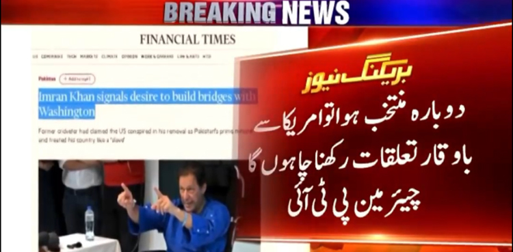 عمران خان نے امریکا کے ساتھ اچھے تعلقات قائم کرنے کی خواہش کا اظہار کرتے ہوئے کہا اگر دوبارہ منتخب ہوئے تو امریکا سے باوقار تعلقات رکھنا چاہیں گے۔