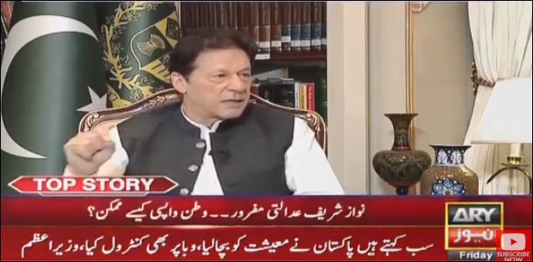 اے آر وائی نیوز کے پروگرام دی رپورٹر کو وزیراعظم عمران خان نے خصوصی انٹرویو دیا۔ نوازشریف کی وطن واپس سے متعلق پوچھے گئے سوال کا جواب دیتے ہوئے عمران خان کا کہنا تھا کہ ’نوازشریف کی واپسی کیلئے برطانیہ جانا پڑا تو خودجاؤں گا، اگر ضرورت پڑی تو برطانوی وزیراعظم بورس جانسن سے خود بات کروں گا، انہوں نے ملک کے ساتھ جوبھی کیا بدقسمتی سے عدلیہ نے ہمیشہ اُن کا ساتھ دیا‘۔