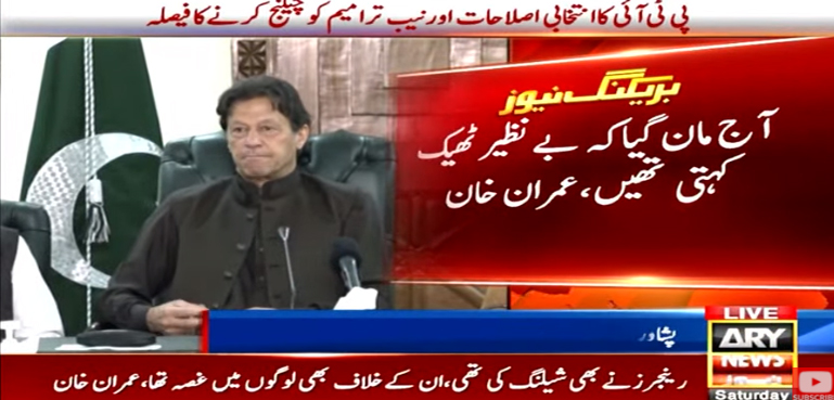 اے آر وائی نیوز کے مطابق پاکستان تحریک انصاف کے سربراہ اور سابق وزیراعظم عمران خان نے پشاور میں کور کمیٹی کے اجلاس کے بعد پارٹی کے مرکزی رہنماؤں کے ہمراہ نیوز کانفرنس کرتے ہوئے ملک کو درپیش کئی اہم مسائل پر بات کی اور اپنے آئندہ کے سیاسی لائحہ عمل سے میڈیا کو آگا کیا۔