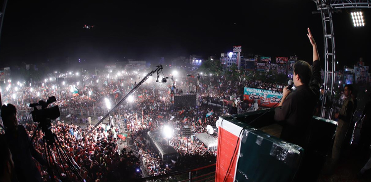 عمران خان کا کہنا تھا کہ میں نیا پاکستان بنتے دیکھ رہا ہوں حقیقی آزادی کیلئے میری قوم میرے ساتھ نکل رہی ہے، خوشی ہے صرف نوجوان نہیں بزرگ، خواتین اور بچے بھی نکل رہے ہیں، فیصل آباد! کیا میں جب اسلام آباد کی کال دوں گا تو آپ لوگ تیار ہیں؟، مخالفین کہتے ہیں گرمی بہت ہے لوگ نہیں نکلیں گے۔