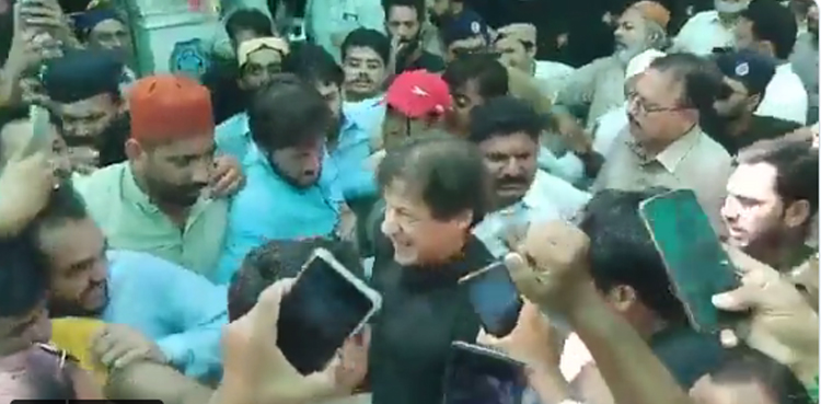 شہریوں کا سمندر عمران خان کے گرد امڈ آیا، عمران خان کے ہمراہ ڈاکٹر شہباز گل بھی موجود تھے ، اس موقع پر پولیس کی جانب سے سیکورٹی کے سخت انتظامات کیے گئے تھے۔