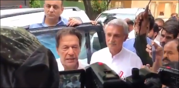 تفصیلات کے مطابق پاکستان تحریک انصاف کے چیئرمین عمران خان نے بارش کے بعد لاہور کا دورہ کیا۔ اس موقع پر جہانگیر ترین اور علیم خان بھی عمران خان کے ہمراہ تھے۔