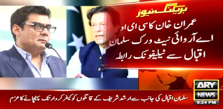 عمران خان کا سی ای او اےآر وائی نیٹ ورک سلمان اقبال سے ٹیلیفونک رابطہ