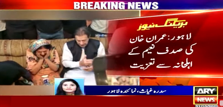 پی ٹی آئی چیئرمین عمران خان نے گزشتہ روز لانگ مارچ کے دوران حادثے میں جاں بحق خاتون صحافی صدف نعیم کے گھر پہنچ کر اہلخانہ سے تعزیت کی۔