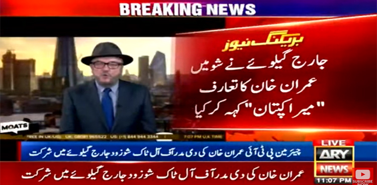 میزبان جارج گیلوئے نے شو میں عمران خان کا تعارف ’’میراکپتان‘‘ کہہ کر کیا اور عمران خان کو حقیقی منتخب وزیراعظم قرار دیا۔