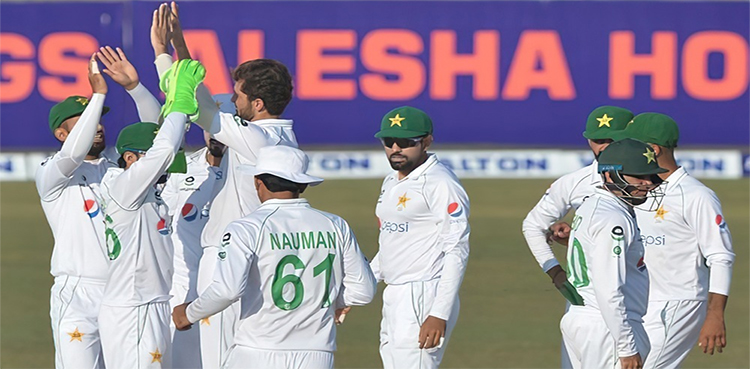 چٹاگانگ ٹیسٹ میں شاہینوں کا پلٹ کر وار، پہلی اننگز میں خسارے میں جانے کےبعد دوسری اننگز میں بنگلادیش کے ٹاپ آرڈر کو پویلین لوٹا دیا۔
