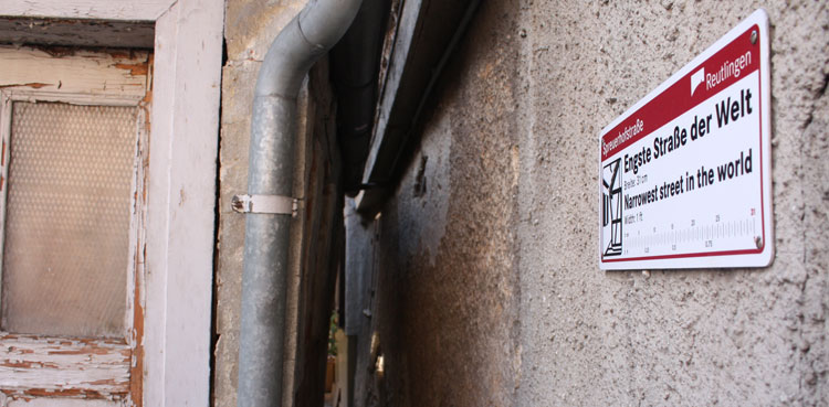 جرمنی کے شہر رائٹلنگن میں Spreuerhofstraße نام کی ایک گلی ہے جو گنیز بک آف ورلڈ ریکارڈز میں دنیا کی سب سے تنگ گلی کے طور پر رجسٹرڈ ہے، یہ دو گھروں کے درمیان ہے اور اس کی چوڑائی 31 سینٹی میٹر ہے، اس گلی میں سے بڑی مشکل سے ایک آدمی گرز سکتا ہے۔