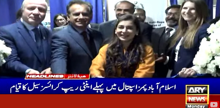 پمز اسپتال میں منعقدہ افتتاحی تقریب میں وزارت قانون و صحت کے حکام سمیت یو این ایف پی کے نمائندے شریک ہوئے۔ انسداد عصمت دری کرائسز سیل، وزارت قانون و انصاف اور وزارت صحت نے برطانوی حکومت، یو این پاپولیشن فنڈ اور لیگل ایڈ سوسائٹی کے تعاون سے قائم کیا گیا ہے۔