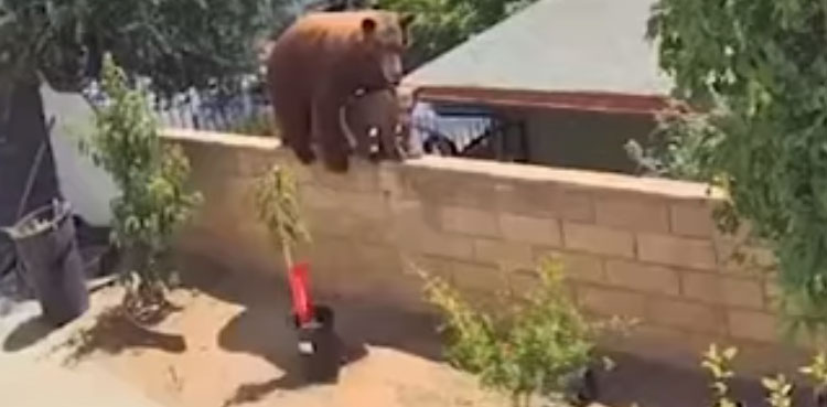 کیلیفورنیا : امریکہ میں ایک بڑا اور خونخوار ریچھ اپنے بچوں کے ہمراہ ایک گھر کے صحن کی دیوار پر چڑھ گیا، نو عمر لڑکی نے ہمت کا مظاہرہ کرتے ہوئے ریچھ کو دیوار سے دھکا دے کر بھگا دیا۔