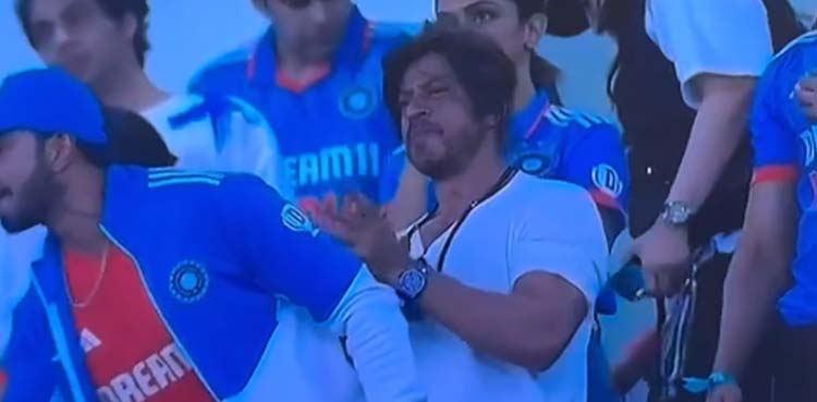 ورلڈ کپ فائنل میں بالی ووڈ کے بادشاہ شاہ رخ خان اسٹیڈیم میں رنویر سنگھ سے پریشان ہوگئے۔