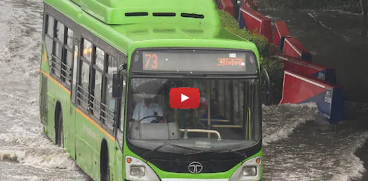 بارشوں کے باعث دہلی ایئرپورٹ سے نکلنے والی مسافر بس پالم فلائی اوور کے قریب پانی میں جا پھنسی، مسافروں نے خود کو پانی میں گھرا تو ان پر خوف طاری ہوگیا، فوری طور پر فائربریگیڈ کو اطلاع دی گئی تاہم فائر بریگیڈ کے اہلکاروں کی مدد سے تمام مسافروں کو بحفاظت باہر نکال لیا گیا۔