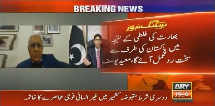 معید یوسف نے کہا کہ چوتھی شرط مقبوضہ کشمیر میں انسانی حقوق کی خلاف ورزیوں کا روکنا اور آخری شرط پاکستان کےخلاف بھارت کی ریاستی دہشت گردی کو روکنا ہے۔