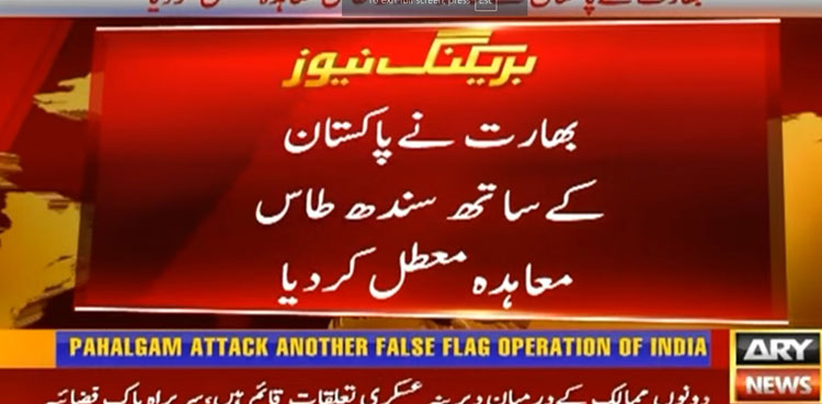 بھارتی وزارت خارجہ نے تمام پاکستانی شہریوں کو 48 گھنٹے میں بھارت چھوڑنے کا حکم دیا ہے، سندھ طاس معاہدہ بھی معطل کردیا۔