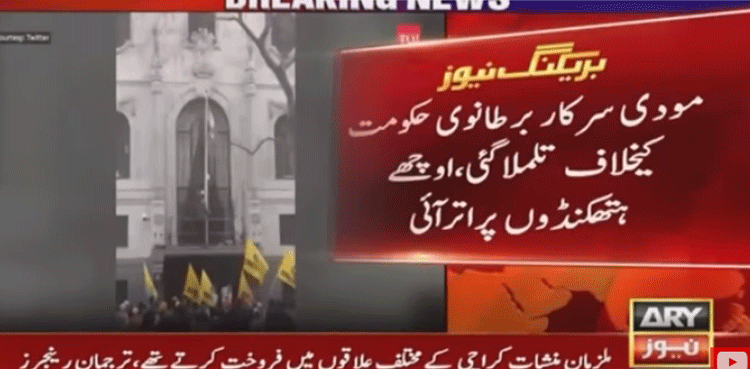 تفصیلات کے مطابق لندن کے بھارتی ہائی کمیشن پر خالصتان کا پرچم لہرانے اور مودی کیخلاف ڈاکو مینٹری کے بعد مودی سرکار برطانوی حکومت کیخلاف تلملا گئی اور اوچھے ہتھکنڈوں پر اُتر آئی۔