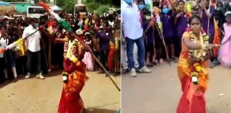 ایسا ہی ایک اور واقعہ بھارتی ریاست نامل ناڈو میں دیکھنے میں آیا ہے، جہاں ایک 22 سالہ لڑکی نے شادی میں شریک مہمانوں کی تفریح کےلیے مارشل آرٹ شروع کردی۔