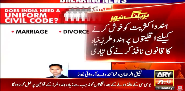 اس امتیازی قانون کے نافذ ہونے کے بعد اقلیتوں کو مذہب سے زیادہ ہندو طرز کے قوانین پر عمل کرنا ہوگا، تاہم ان اقدامات سے نریندر مودی کا بھارتی اقلیتوں کی مذہبی آزادی سلب کرنے کا شرم ناک منصوبہ بھی بے نقاب ہو گیا ہے۔