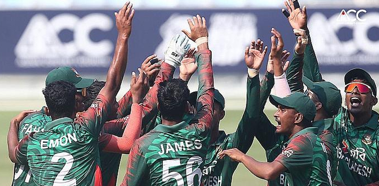 اس سے قبل میچ کا آغاز بھارت نے ٹاس جیت کر بولنگ کے فیصلے سے کیا۔ بنگلا دیش کے لیے شہاب جیمز اور آر حسن نے اہم اننگز کھیلی لیکن وہ نصف سنچریاں بنانے سے محروم رہے۔ جیمز نے 67 گیندوں پر 40 اور حسن نے 65 گیندوں پر 47 رنز بنائے۔