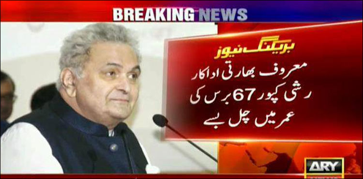 ممبئی : بھارتی اداکار عرفان خان کے بعد ایک اور اداکار رشی کپور نے بھی دنیا کو الوداع کہہ دیا، وہ کینسرکےعارضے میں مبتلا تھے۔