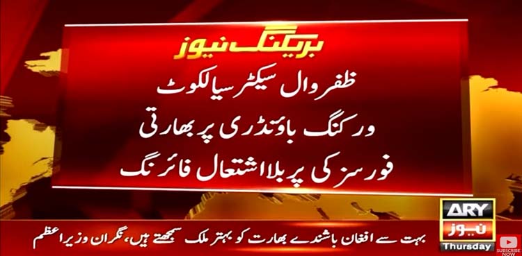 سیالکوٹ: ظفر وال سیکٹر سیالکوٹ ورکنگ باؤنڈری پر بھارتی فورسز نے بلا اشتعال فائرنگ کی ہے۔