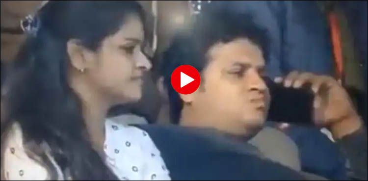 ویڈیو میں دیکھا جاسکتا ہے کہ اس کے ساتھ بیٹھی خاتون میچ سے لطف اندوز ہورہی ہے جبکہ وہ منہ میں گٹکا بھر کے فون پر بات کرنے میں مصروف ہے۔