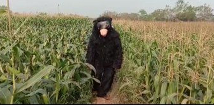 پہلے زمانے میں لوگ کوؤں سے فصلوں کو محفوظ رکھنے کےلیے ڈراؤنے پتلے کھیتوں میں نصب کرتے تھے مگر بھارتی کسان سے شہری کو جانور کا لباس پہنا کر جانوروں کو ڈرانے کیلئے نوکری پر رکھ لیا۔