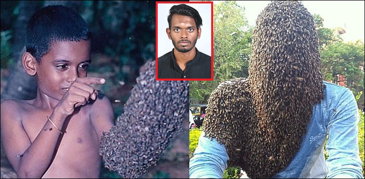 غیرملکی خبررساں ادارے کی رپورٹ کے مطابق شہد کی مکھیوں کے چھتے میں ہاتھ ڈالنے سے لوگ گھبراتے ہیں لیکن بھارتی ریاست کیرالہ کے رہائشی نوجوان نے اپنا منہ 60 ہزار شہد مکھیوں سے ڈھانپ لیا اور کہا کہ کیڑے میرے بہترین دوست ہیں۔