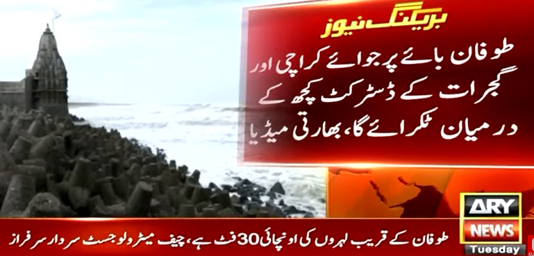 سمندری طوفان کراچی اور گجرات کے ضلع کچھ کے درمیان ٹکرائے گا، بھارتی میڈیا