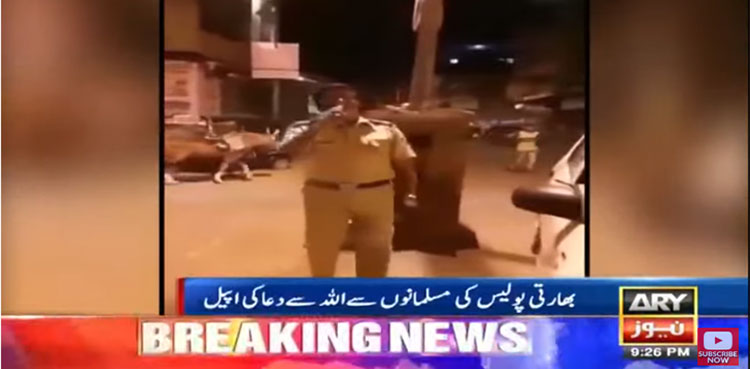 اس بھیانک صورتحال میں بھارتی پولیس اہلکار مسلمانوں کے محلوں میں جا کر اپیل کرنے لگے، اہلکار نے لاؤڈ اسپیکر پرمسلمانوں کو مخاطب کرتے ہوئے کہا کہ آپ رمضان میں تراویح پڑھتےہیں، تراویح کی دعاجلد قبول ہوتی ہے، نمازمیں دعاکریں کہ اللہ ہمیں کورونا سے نجات دیدے۔