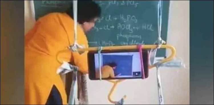 خاتون ٹیچر نے آن لائن کلاس لینے کا انوکھا حل ڈھونڈ نکالا