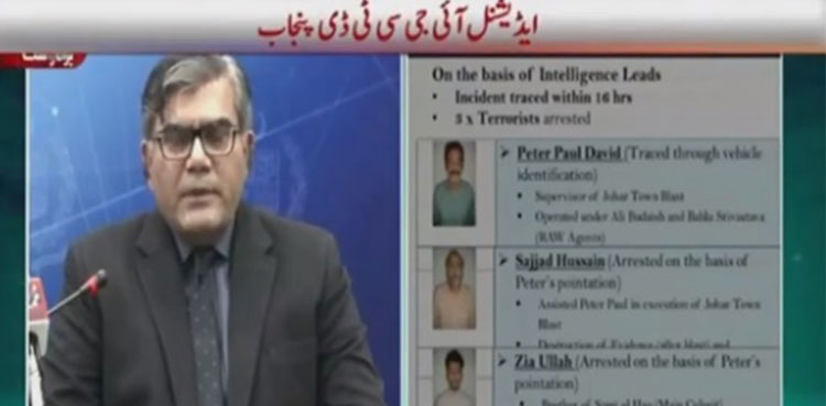 یاد رہے کہ 23جون2021 لاہورکے جوہرٹاؤن میں ایک گاڑی میں دھماکا ہواتھا، جس کے نتیجے میں تین شہری شہید اور 22 زخمی ہوئے تھے۔