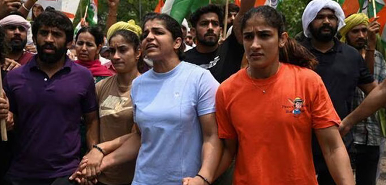 غیر ملکی میڈیا کے مطابق بھارتی خواتین ریسلر کو اولمپک میڈلسٹ ساکشی ملک، بجرنگ پونیا اور ونیش پھوگاٹ کی قیادت میں اپنے مطالبات کے حق میں کئی ماہ سے سراپا احتجاج ہیں نے مودی سرکار کے سامنے ہار ماننے سے انکار کرتے ہوئے انڈین ریسلنگ فیڈریشن (ڈبلیو ایف آئی) کے سربراہ اور اتر پردیش سے بی جے پی کے رکن پارلیمنٹ برج بھوشن شرن شرن سنگھ کی گرفتاری تک اپنا احتجاج جاری رکھنے کا اعلان کیا ہے۔