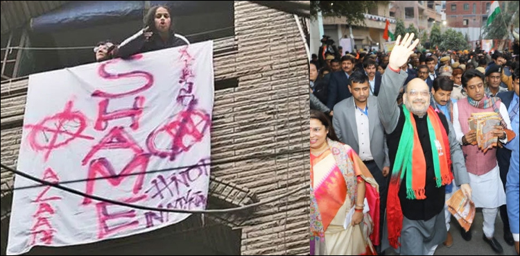 بھارتی میڈیا رپورٹ کے مطابق وزیر داخلہ امیت شاہ نے نئی دہلی کے علاقے لاجپت نگر کا دورہ کیا، اس موقع پر خواتین نے احتجاج کے لیے اپنے گھر کی کھڑکی میں احتجاجی بینر آویزاں کیا۔