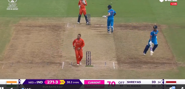 ویرات کوہلی نے شریاس ائیر کے ساتھ مل کر 71 رنز جوڑے اور 51 رنز بنانے کے بعد میکرین کی دوسری وکٹ بنے اس وقت بھارتی ٹیم کا مجموعی اسکور 200 رنز تھا۔