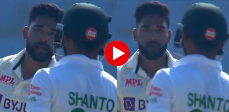 وائرل ویڈیو میں دیکھا جاسکتا ہے کہ نجم الحسین شنٹو بیٹنگ کررہے ہیں اس دوران سراج بولنگ کروانے کے بعد ان کے پاس آتے ہیں اور ان پر جملے کستے ہیں لیکن شنٹو انہیں کوئی جواب نہیں دیتے۔