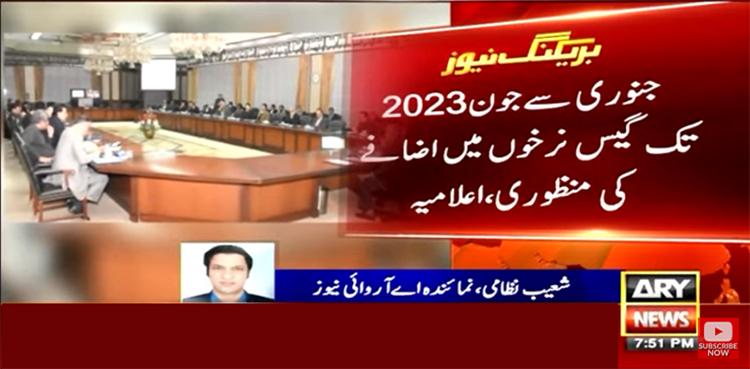 تفصیلات کے مطابق وزیرخزانہ اسحاق ڈار کی زیرصدارت اقتصادی رابطہ کمیٹی کا اجلاس ہوا جس میں جنوری سے جون 2023 تک گیس نرخوں میں اضافے کی منظوری دے دی گئی۔