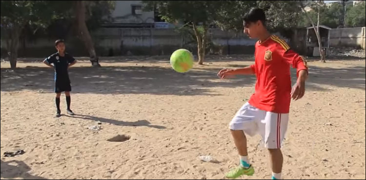 نوجوان نے اے آر وائی نیوز سے بات کرتے ہوئے بتایا کہ پرانی سبزی منڈی میں ایسا کوئی گراؤنڈ موجود نہیں جہاں فٹبال کھیلی جاسکی، یہاں صرف اور صرف مٹی ہےجو کسی بچے کے زخمی ہونے کا باعث بھی بن سکتی ہے۔