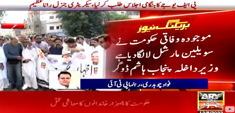 وزیر داخلہ پنجاب ہاشم ڈوگر نے اے آر وائی نیوز کے این او سی کی منسوخی پر کہا ہے کہ موجودہ وفاقی حکومت نے سویلین مارشل لا لگا دیا ہے۔