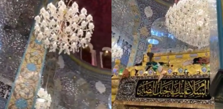 اس ویڈیو میں دیکھا جاسکتا ہے کہ بہت خوبصورتی اور محبت سے تعمیر کیا گیا بی بی زینبؓ کا مزار بالکل سلامت ہے اور وہاں موجود لوگ جوکہ زلزلے کے شدید جھٹکے محسوس کرنے کے بعد خوفزدہ ہیں، اللّٰہ تعالیٰ سے دعائیں مانگ رہے ہیں۔