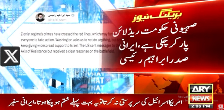 غیر ملکی میڈیا رپورٹس کے مطابق ایران کے صدر ابراہیم رئیسی نے غزہ پر اسرائیلی افواج کی وحشیانہ بمباری پر سخت رد عمل ظاہر کرتے ہوئے کہا ہے کہ اسرائیلی اقدام کسی کو بھی ایکشن لینے پر مجبور کر سکتا ہے۔
