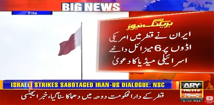 اسرائیلی میڈیا کا کہنا ہے کہ ایران نے قطر میں امریکی فوجی اڈے پر 6 اور عراق میں ایک میزائل داغا ہے۔