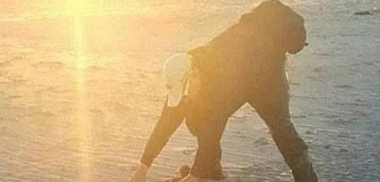 مذکورہ تصویر سوشل میڈیا پر آئی تو پھر وائرل ہوگئی کیونکہ اس تصویر میں ایک گوریلا سورج غروب کے وقت ساحل سمندر پر چہل قدمی کرتا نظر آرہا ہے، لیکن غور سے دیکھیں کہ کیا یہ واقعی ایک گوریلا ہے، کیونکہ نظروں کا دھوکا ہماری آنکھوں اور دماغ کے درمیان موجود تعلق منقطع ہونے کو جانچنے کا ایک دلچسپ طریقہ ہے۔