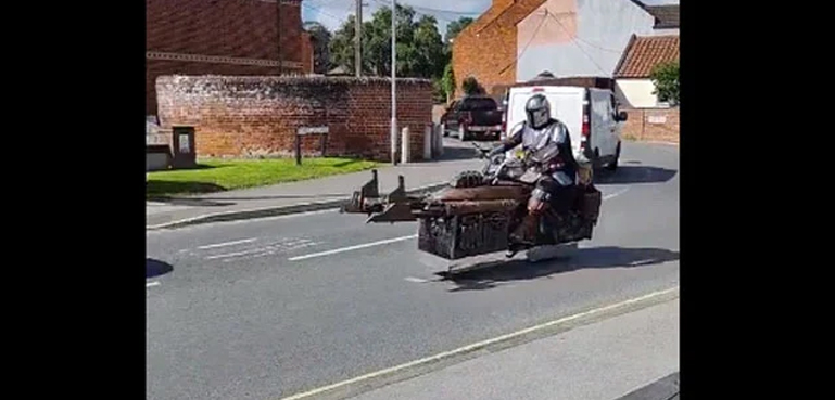 ہالی ووڈ فلم سیریز اسٹار وارز کے کردار مینڈا لورین کے بہروپ میں ایک شخص کی فضا میں بائیک اڑانے کی ویڈیو نے سب کو حیران کر دیا ہے۔