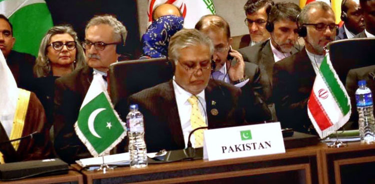 اسحاق ڈار کا کہنا تھا کہ فلسطینیوں پر ظلم رکوانا امت مسلمہ کی مشترکہ ذمہ داری ہے، پاکستان فلسطینی ریاست کے قیام کی حمایت جاری رکھے گا، اسرائیلی جارحیت کی وجہ سے خواتین اور بچوں سمیت ہزاروں افراد شہید ہوچکے ہیں، غزہ میں فوری اور غیر مشروط جنگ بندی کا مطالبہ کرتے ہیں۔