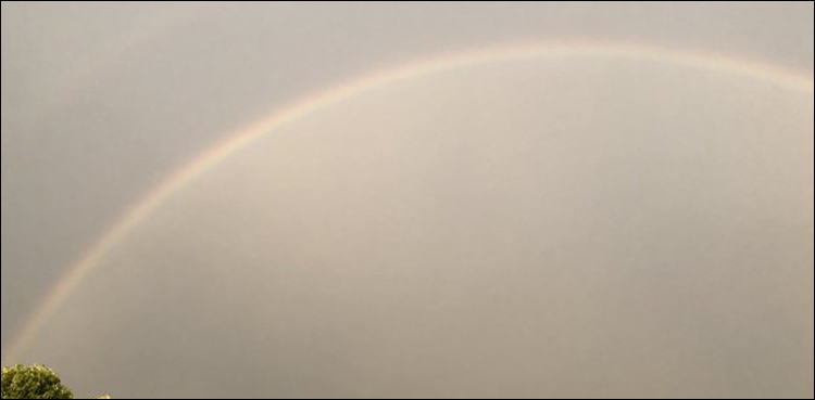اسلام آباد: پاکستان کے جڑواں شہروں وفاقی دارالحکومت اور راولپنڈی میں شام کے وقت اچانک طوفانی بارش ہوئی جس کے بعد گرمی کا زور ٹوٹ گیا اور آسمان پر قوس قزح کے رنگ بکھر گئے۔