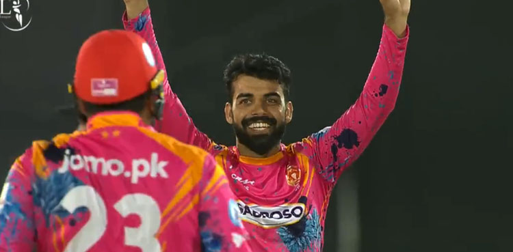 اسلام آباد یونائیٹڈ کے کپتان شاداب خان نے 5 کھلاڑیوں کو پویلین کی راہ دکھائی، حسن علی اور وسیم جونیئر نے دو، دو وکٹیں حاصل کیں، وقاص مقصود نے ایک وکٹ حاصل کی۔